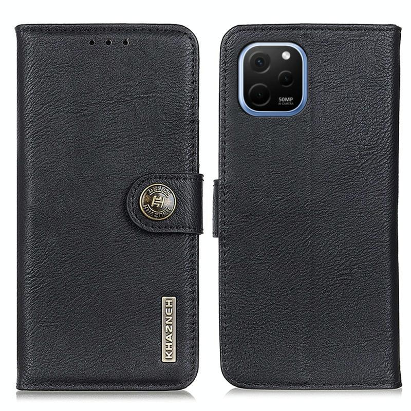 Θήκη τηλεφώνου Huawei Nova Y61 KHAZNEH από δέρμα αγελάδας με υφή, οριζόντια αναδιπλούμενη (Καφέ)
