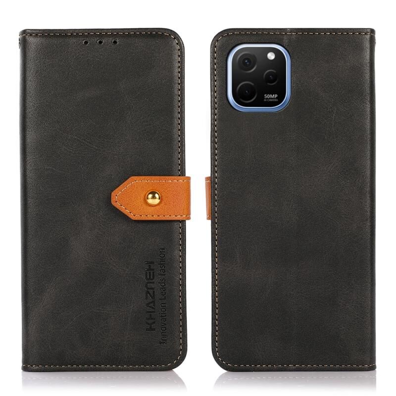 Θήκη τηλεφώνου Huawei Nova Y61 KHAZNEH Δερμάτινη αναδιπλούμενη με διχρωμία και υφή δέρματος αγελάδας (Καφέ)