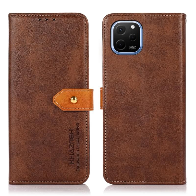 Θήκη τηλεφώνου Huawei Nova Y61 KHAZNEH Δερμάτινη αναδιπλούμενη με διχρωμία και υφή δέρματος αγελάδας (Καφέ)