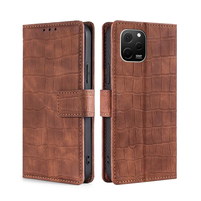 For Huawei nova Y61 Skin Feel Crocodile Magnetic Clasp Leather Phone Case(Brown)