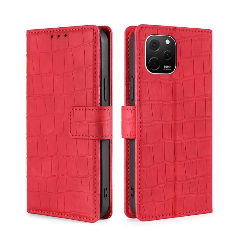 Θήκη τηλεφώνου Huawei nova Y61 με δερμάτινη υφή κροκόδειλου και μαγνητικό κούμπωμα (Κόκκινο)