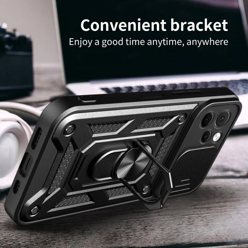 Θήκη κινητού τηλεφώνου Huawei nova Y61 με σχεδιασμό ολισθαίνουσας κάμερας, κατασκευασμένη από TPU+PC (Μαύρο)
