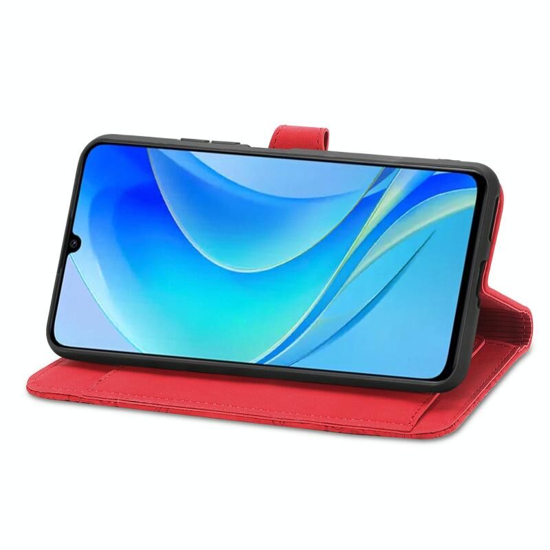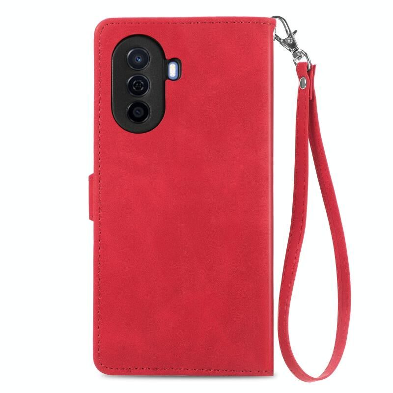 Για Huawei Nova Y70 ανάγλυφο λουλούδι φερμουάρ δερμάτινη θήκη τηλεφώνου (κόκκινο)
