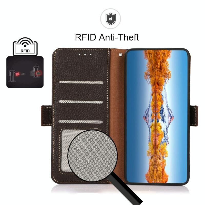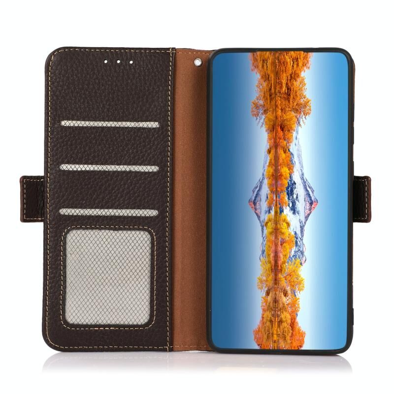 Θήκη τηλεφώνου Huawei nova Y70 Plus KHAZNEH με μαγνητικό κλείσιμο, γνήσιο δέρμα Litchi, RFID (Μπλε)