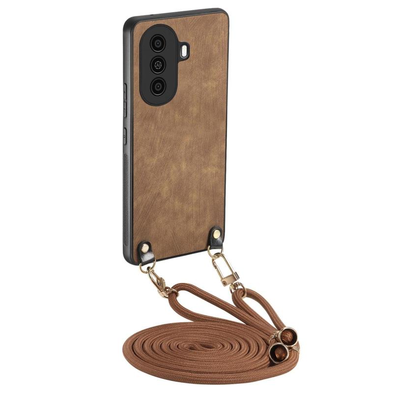 For Huawei nova Y70 / Y70+ Vintage Leather PC Back Cover Phone Case with Crossbody Strap(Brown)