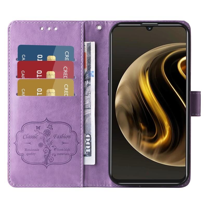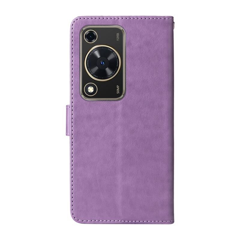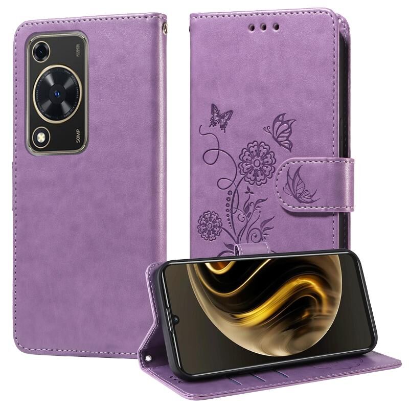 Θήκη τηλεφώνου από δέρμα με ανάγλυφα λουλούδια και πεταλούδες για Huawei nova Y72 4G / Enjoy 70 (Μωβ)