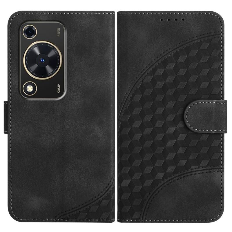 Θήκη δερμάτινη για Huawei nova Y72 με ανάγλυφο σχέδιο κεφαλής ελέφαντα και κορδόνι (Μαύρο)