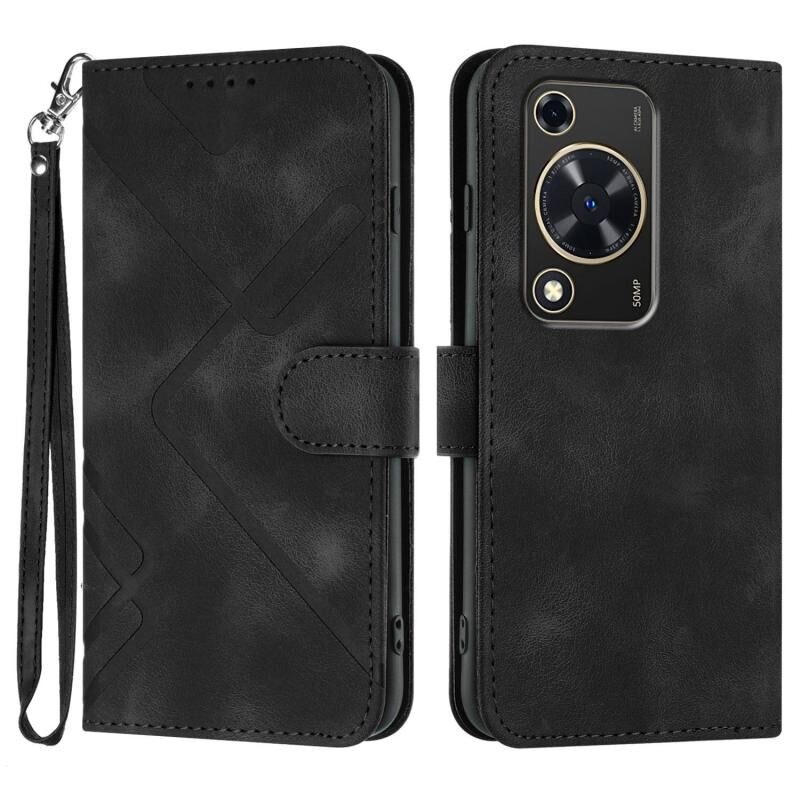 Θήκη τηλεφώνου Huawei nova Y72 με υφή δέρματος και σχέδιο γραμμής (Μαύρο)