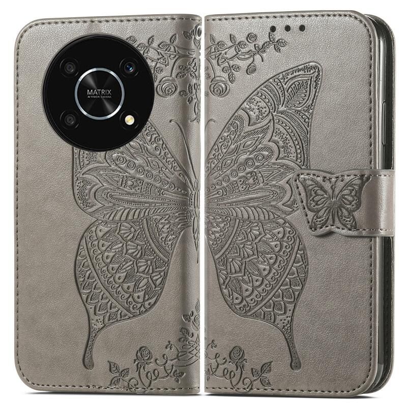 Θήκη Huawei nova Y90 Butterfly Love Flower ανάγλυφη οριζόντια δερμάτινη με βάση / υποδοχή κάρτας / πορτοφόλι / κορδόνι (Μαύρο)