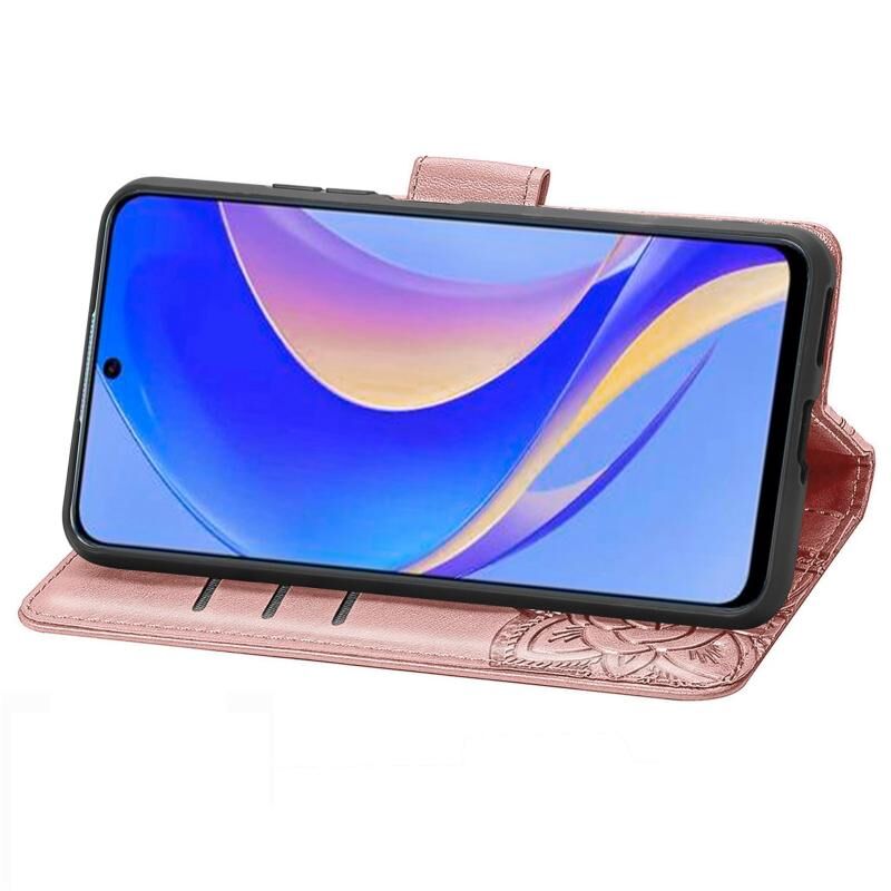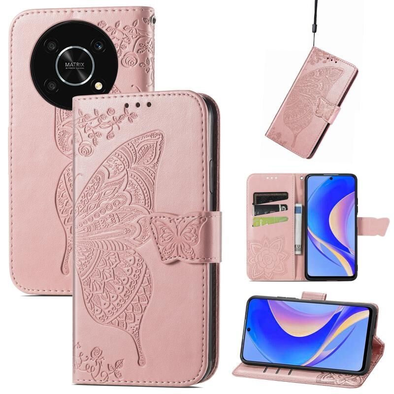 Θήκη Huawei nova Y90 Butterfly Love Flower ανάγλυφη οριζόντια δερμάτινη με βάση / υποδοχή κάρτας / πορτοφόλι / κορδόνι (Μαύρο)