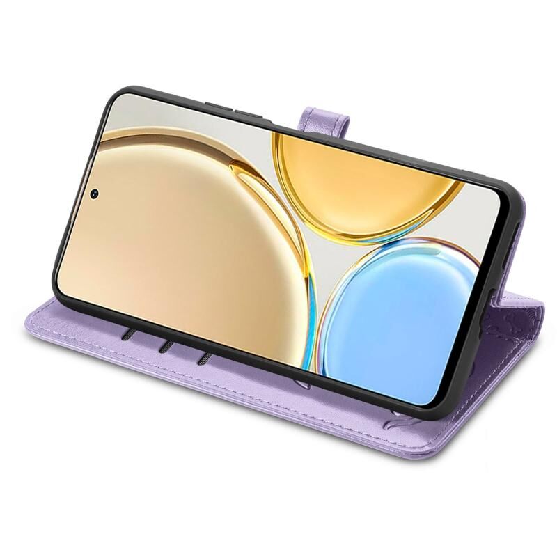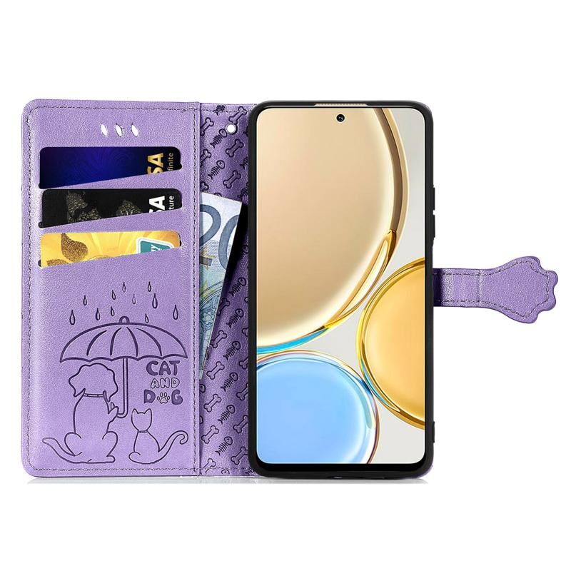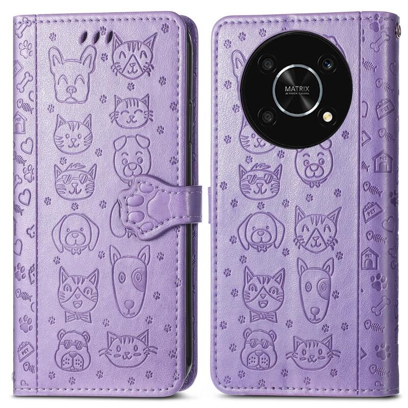 Θήκη τηλεφώνου από δέρμα με ανάγλυφα σχέδια γατιού και σκύλου για Huawei Nova Y90 (Μωβ)