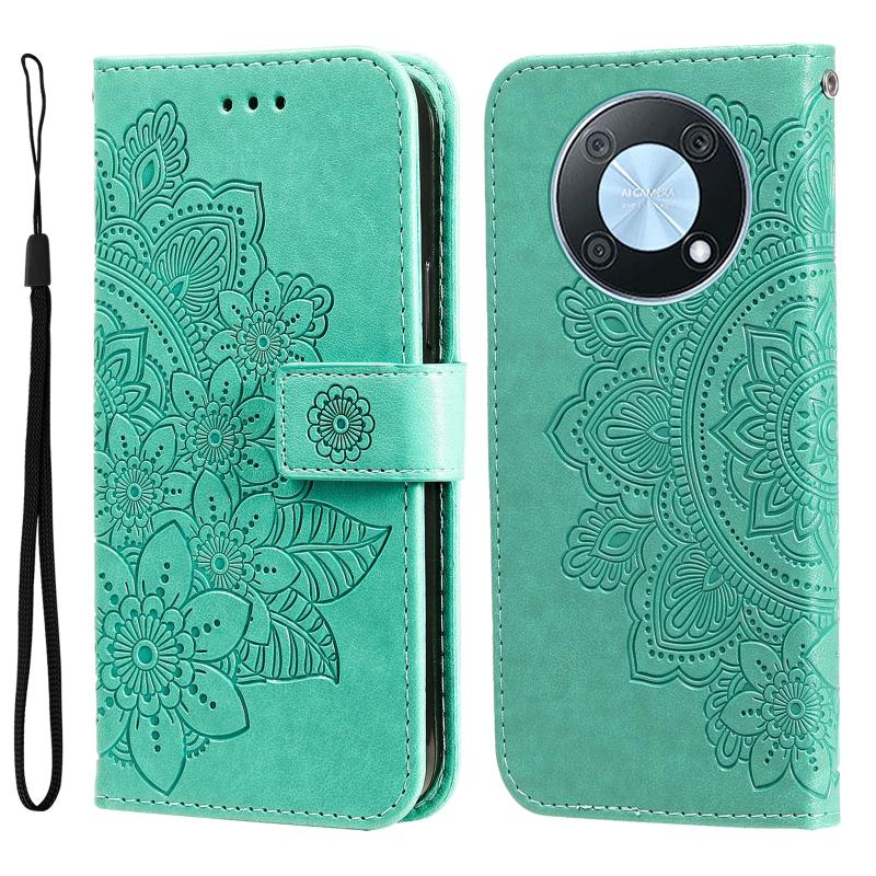 Θήκη τηλεφώνου από δέρμα με ανάγλυφα 7 πέταλα λουλουδιών για Huawei nova Y90 / Enjoy 50 Pro (Χρυσό Ρόδι)