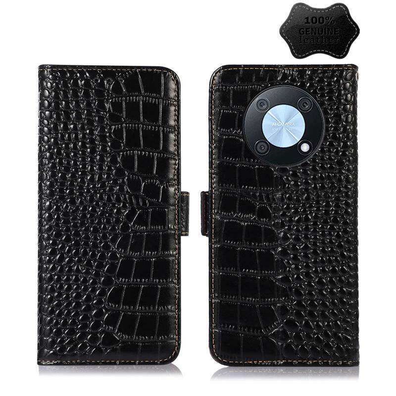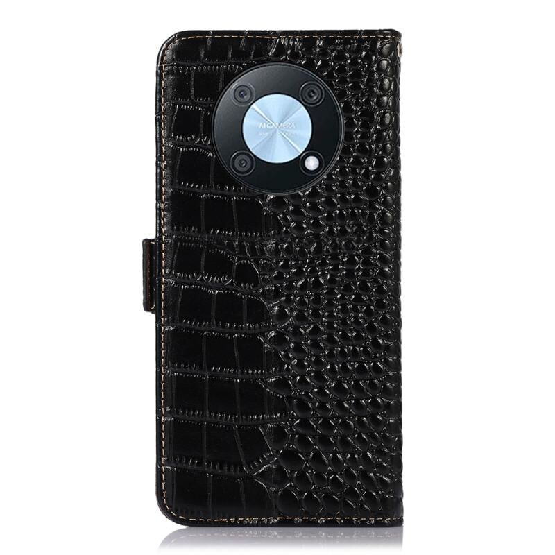 Θήκη τηλεφώνου από γνήσιο δέρμα αγελάδας με επικάλυψη κροκόδειλου για Huawei Nova Y90/Enjoy 50 Pro (Μαύρο)