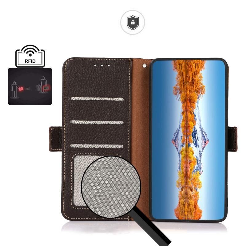 Θήκη τηλεφώνου από γνήσιο δέρμα με υφή Litchi KHAZNEH για Huawei nova Y90 / Enjoy 50 Pro (Καφέ)