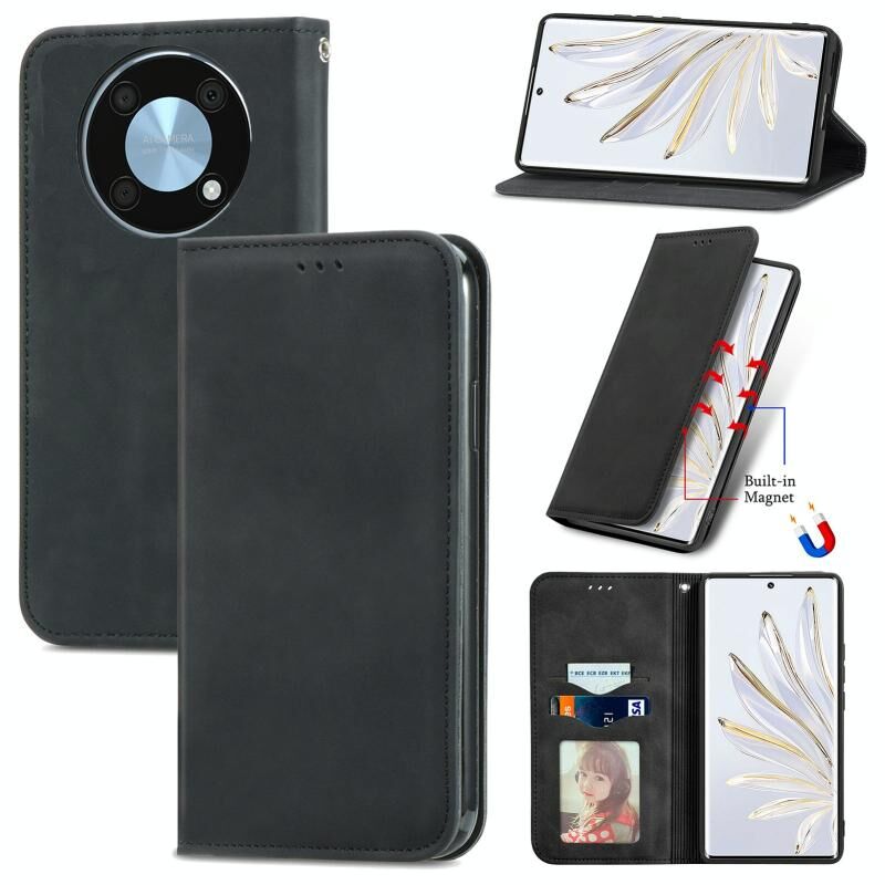 Για Huawei Nova Y90 Ρετρό δέρμα αίσθηση μαγνητικό δέρμα τηλέφωνο υπόθεση (Μαύρο)