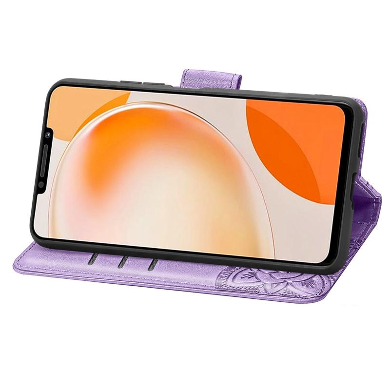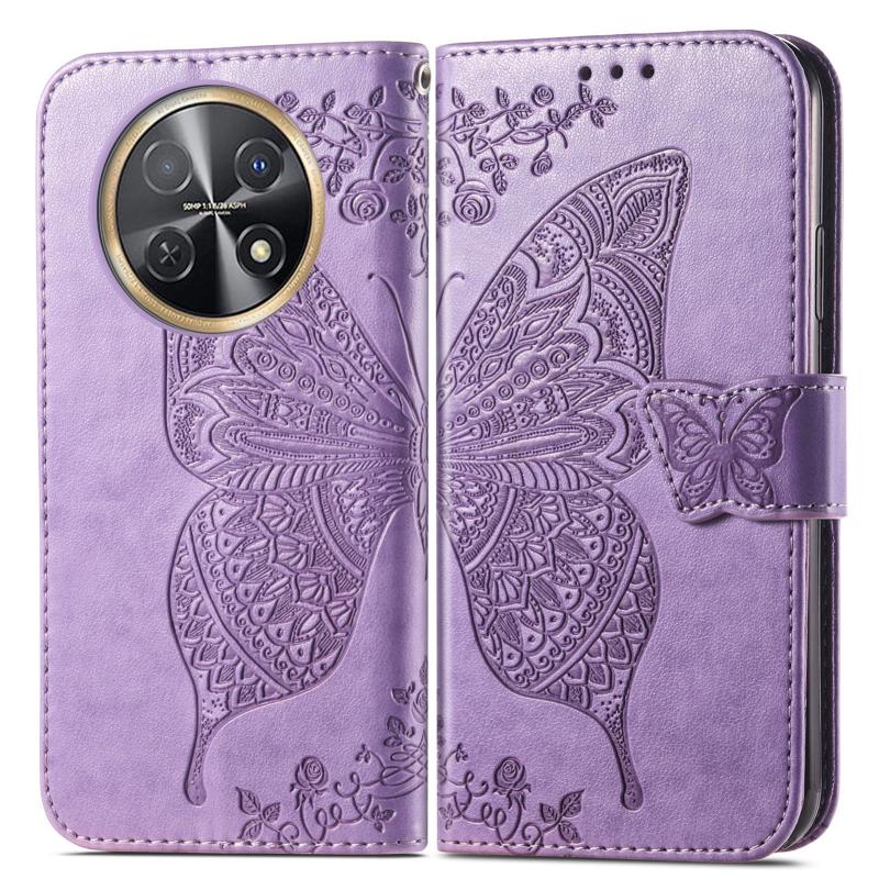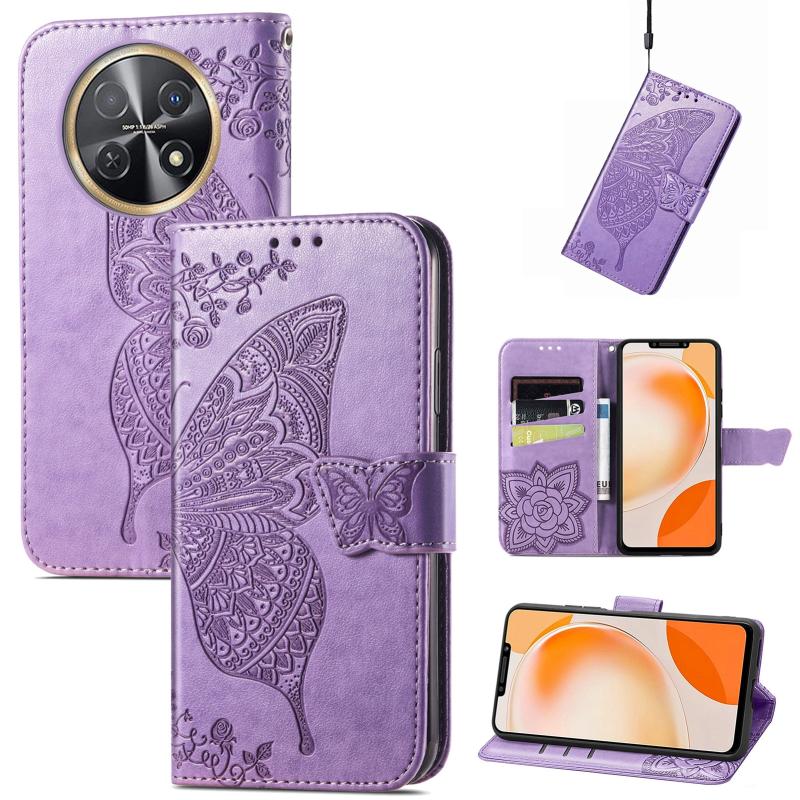 For Huawei Nova Y91 Butterfly Love Flower Embossed Leather Phone Case(Light Purple)