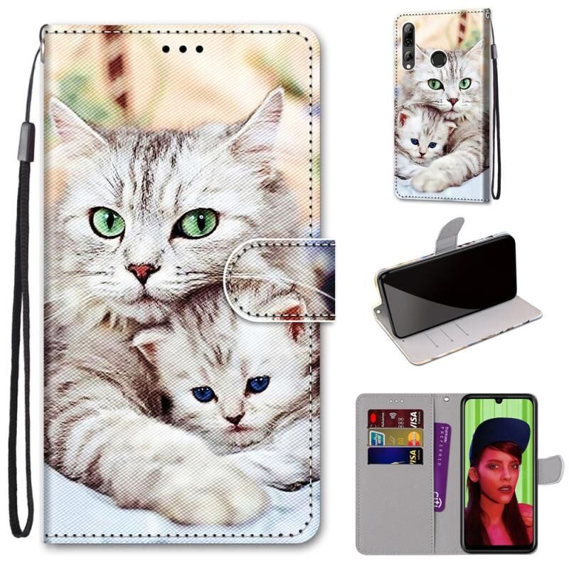 Θήκη δέρματος PU με οριζόντιο άνοιγμα για Huawei P smart+ 2019 / Enjoy 9s με πολύχρωμο σχέδιο, ανάγλυφη υφή, βάση στήριξης, θήκες για κάρτες, πορτοφόλι και κορδόνι (Μεγάλη γάτα που κρατάει γατάκι)