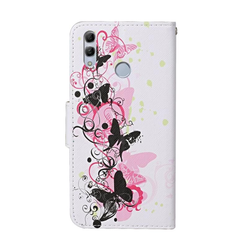 Θήκη δέρματος οριζόντιας αναδίπλωσης με σχέδιο πολύχρωμης ζωγραφικής για Huawei P smart (2019) / Honor 10 Lite με βάση στήριξης & υποδοχές καρτών & πορτοφόλι (Τέσσερις Πεταλούδες)