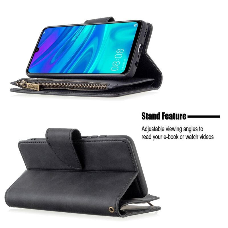 Για το Huawei P Smart (2019) Skin Feel Αποσπώμενη μαγνητική θήκη από PU δέρμα με φερμουάρ και οριζόντια αναδιπλούμενη θήκη PU με θήκη για κάρτες & υποδοχές κάρτας & πορτοφόλι & κορνίζα φωτογραφιών & κορδόνι (μαύρο)
