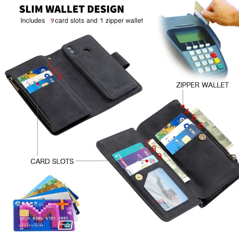 4. Πολυλειτουργικός σχεδιασμός, βολικές 9 υποδοχές για κάρτες, πορτοφόλι με φερμουάρ, θήκη, αποσπώμενο μαγνητικό προστατευτικό κάλυμμα στο πίσω μέρος