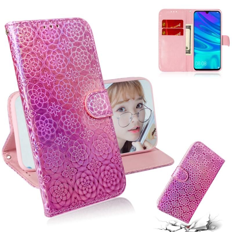 Για Huawei P Smart 2019 Αμιγές χρώμα πολύχρωμο μαγνητικό πόρπη οριζόντια Flip PU δέρμα υπόθεση με κάτοχο & υποδοχές καρτών & πορτοφόλι & Lanyard (ροζ)