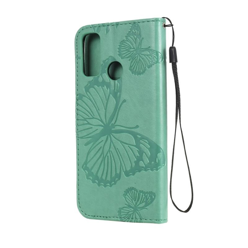 Θήκη δέρματος οριζόντιας αναδίπλωσης με ανάγλυφο σχέδιο 3D πεταλούδων για Huawei P Smart (2020) με βάση στήριξης & υποδοχή κάρτας & πορτοφόλι (Πράσινο)