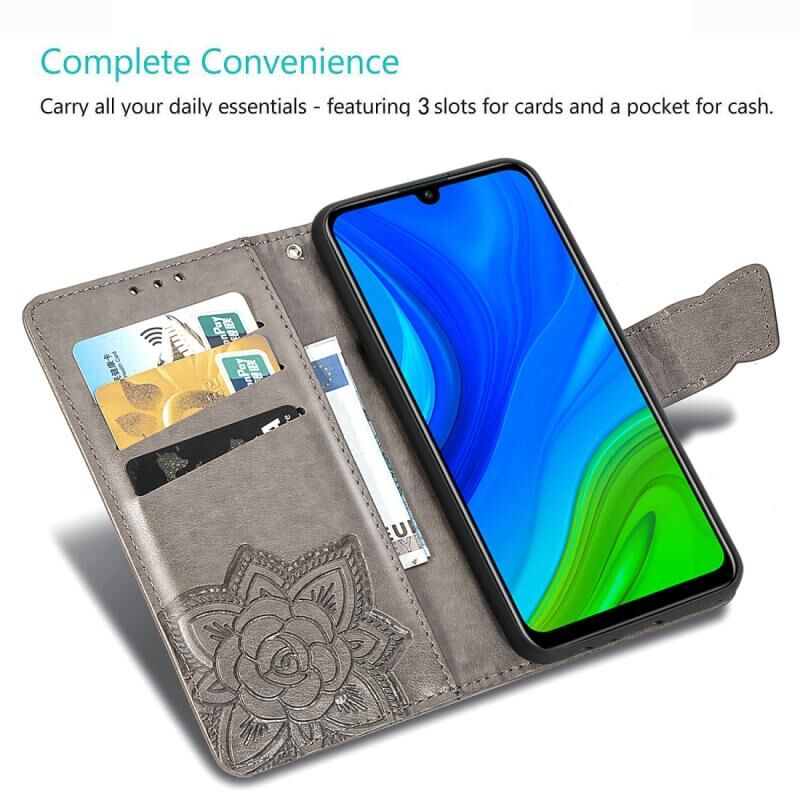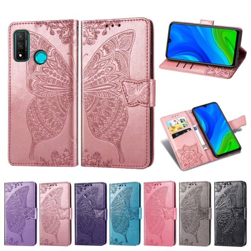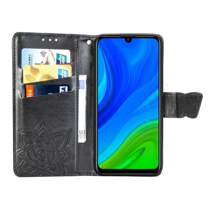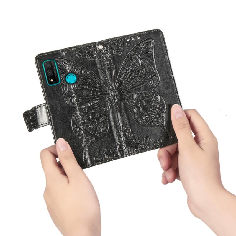 For Huawei P Smart 2020 Butterfly Love Flower Embossed Horizontal Flip Leather Case with Bracket / Card Slot / Wallet / Lanyard(Black)