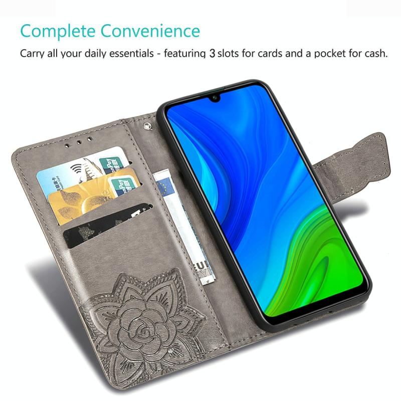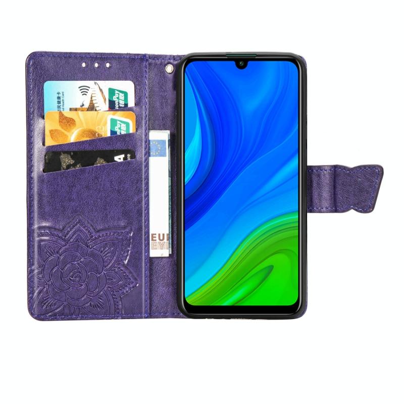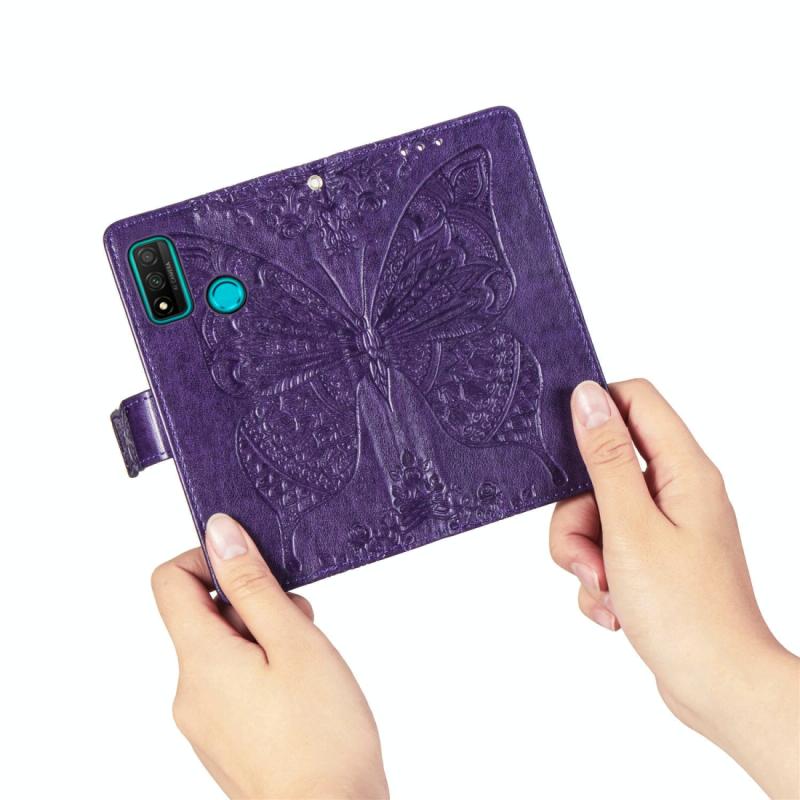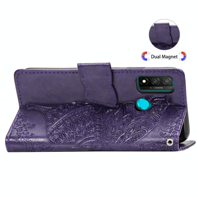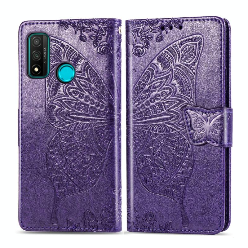 For Huawei P Smart 2020 Butterfly Love Flower Embossed Horizontal Flip Leather Case with Bracket / Card Slot / Wallet / Lanyard(Dark Purple)