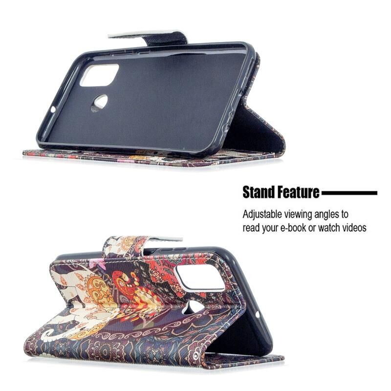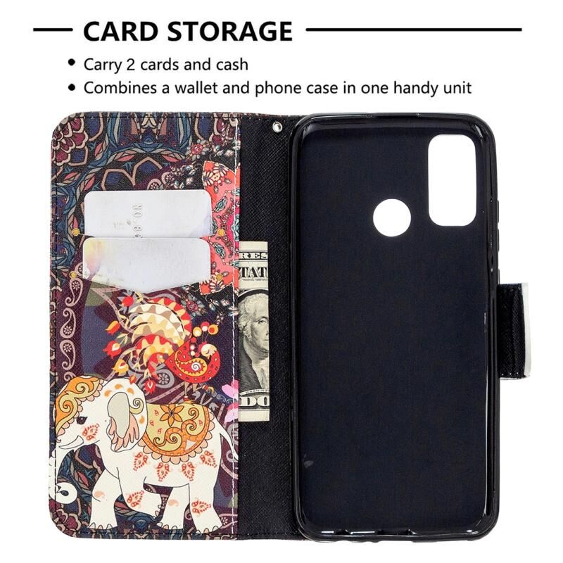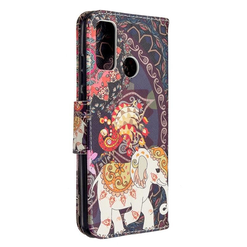 Θήκη δέρματος οριζόντιας αναδίπλωσης με σχέδιο ζωγραφικής και χρώματα για Huawei P Smart (2020) με βάση στήριξης & υποδοχές καρτών & πορτοφόλι (Λουλούδια και Ελέφαντας)