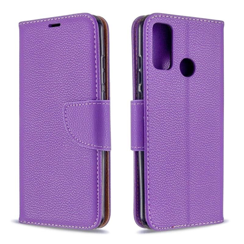 Για Huawei P Smart (2020) Litchi υφή καθαρό χρώμα οριζόντια Flip PU δέρμα υπόθεση με θήκη & υποδοχές για κάρτες & πορτοφόλι & κορδόνι (μωβ)
