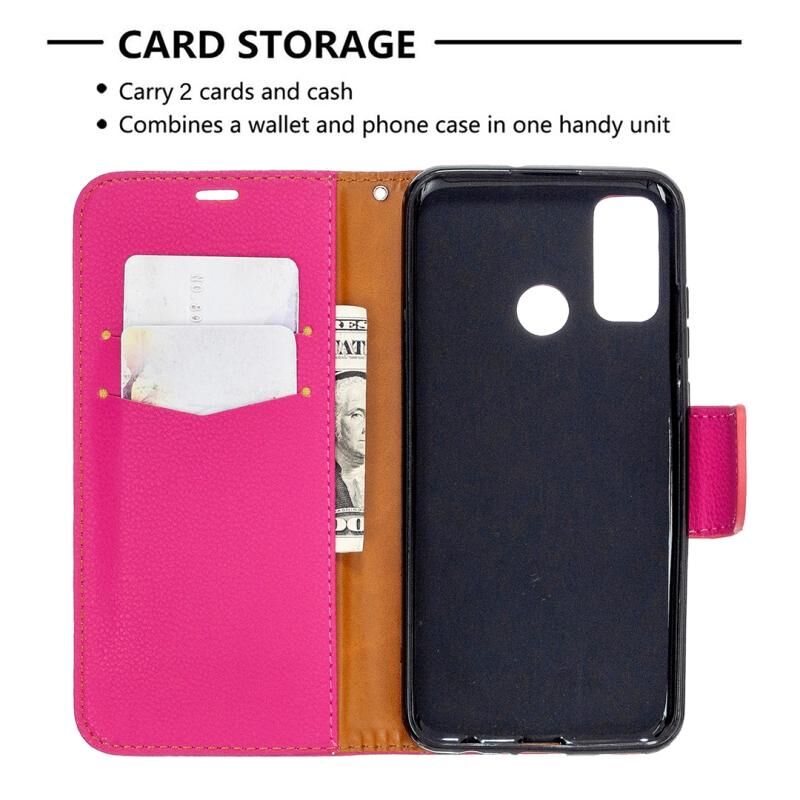 Για Huawei P Smart (2020) Litchi υφή καθαρό χρώμα οριζόντια Flip PU δέρμα υπόθεση με θήκη & υποδοχές για κάρτες & πορτοφόλι & κορδόνι (Rose Red)