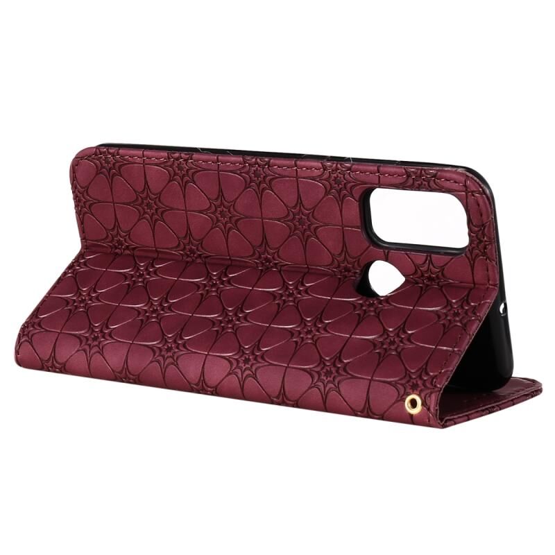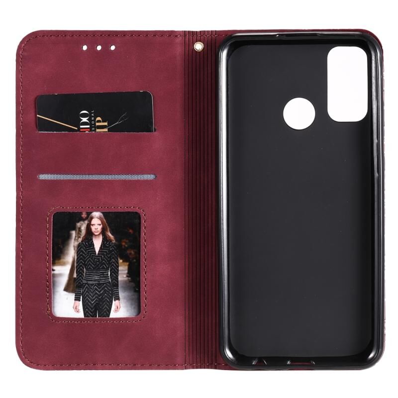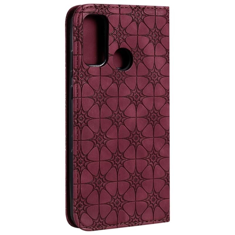 Θήκη Huawei P Smart (2020) με μαγνητικό κλείσιμο, δερμάτινη, οριζόντια, με ανάγλυφο σχέδιο τυχερών λουλουδιών, με βάση στήριξης & θήκες για κάρτες (Σκούρο Πράσινο)