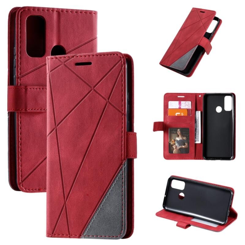 Για Huawei P smart 2020 Skin Feel Splicing οριζόντια Flip δερμάτινη θήκη με κάτοχο & υποδοχές καρτών & πορτοφόλι & πλαίσιο φωτογραφιών (κόκκινο)