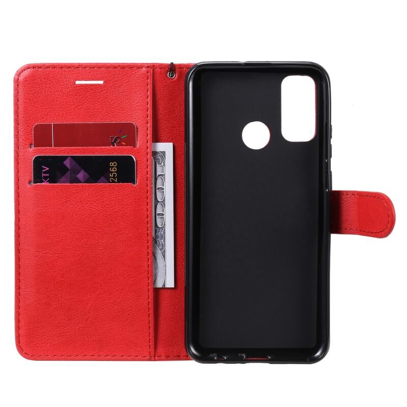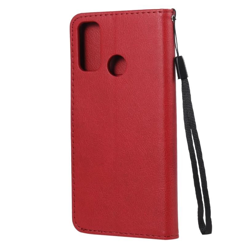 Για Huawei P smart 2020 Αμιγές χρώμα οριζόντια Flip προστατευτική δερμάτινη θήκη με κάτοχο & υποδοχές καρτών & πορτοφόλι & κορδόνι (Κόκκινο)