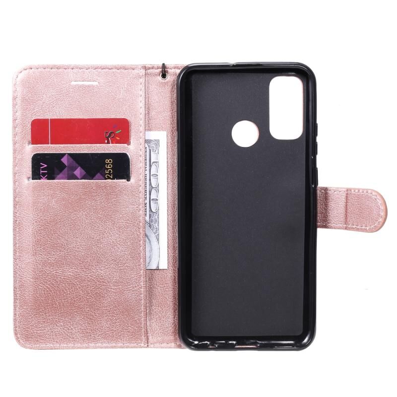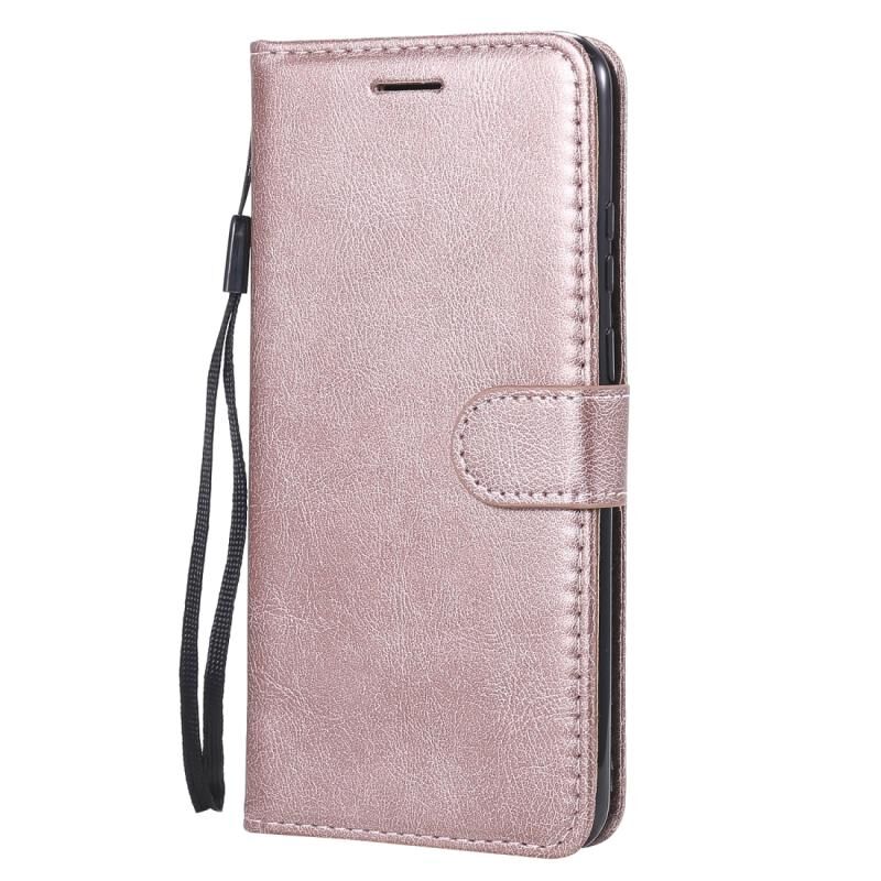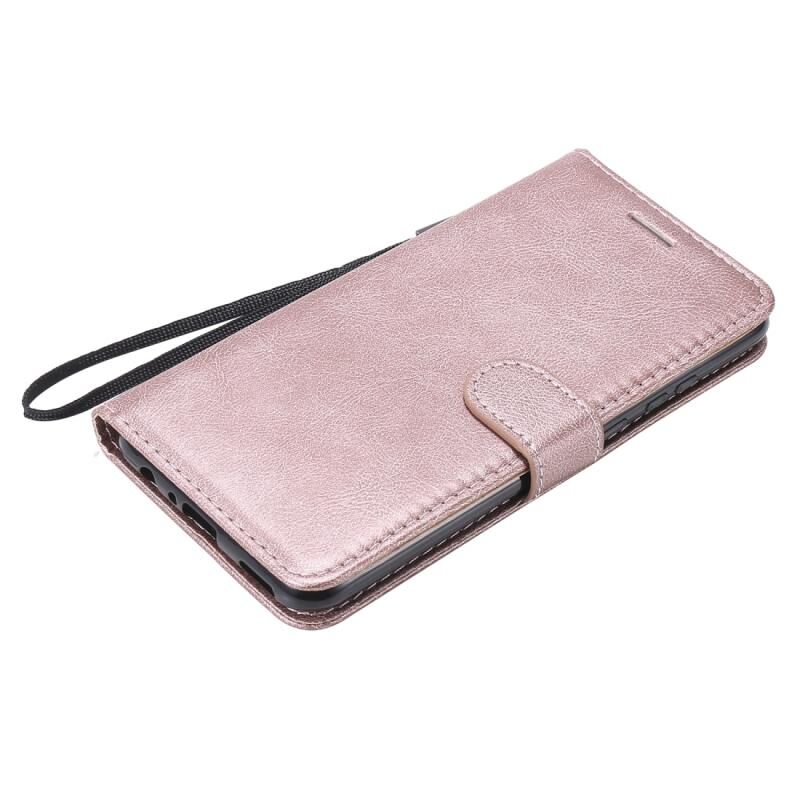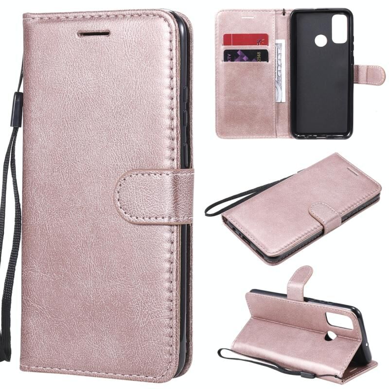 Για Huawei P smart 2020 Αμιγές χρώμα οριζόντια Flip προστατευτική δερμάτινη θήκη με κάτοχο & υποδοχές καρτών & πορτοφόλι & κορδόνι (Ροζ χρυσός)