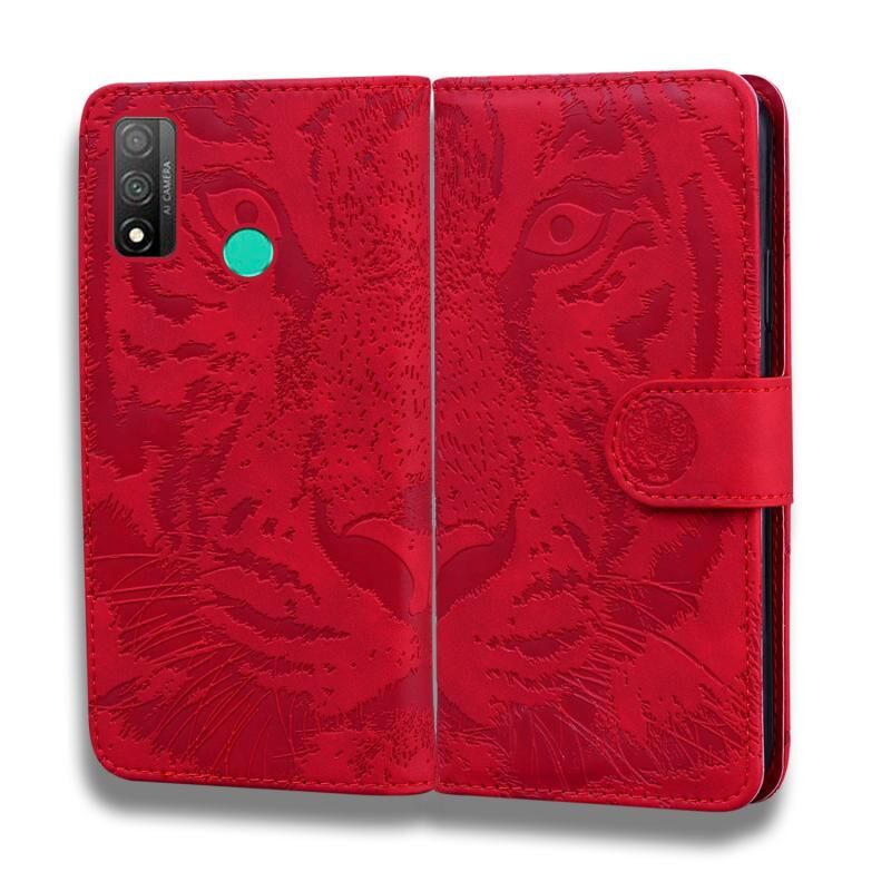 Θήκη Huawei P smart 2020 με ανάγλυφο σχέδιο τίγρης, οριζόντια, από δέρμα με βάση στήριξης & θήκες για κάρτες & πορτοφόλι (Καφέ)