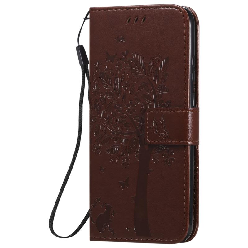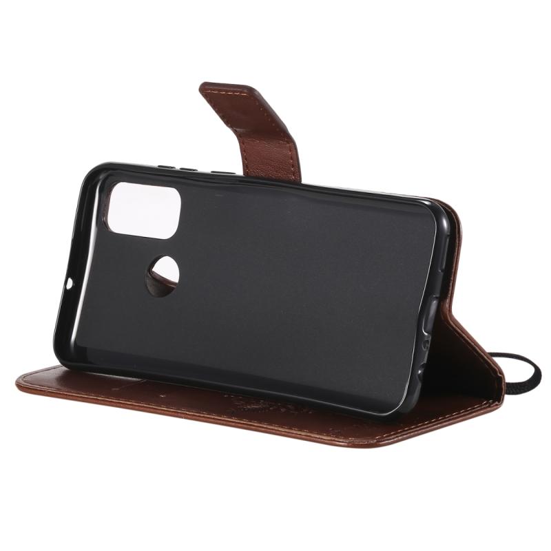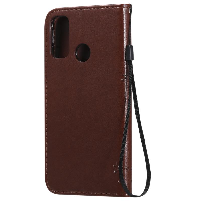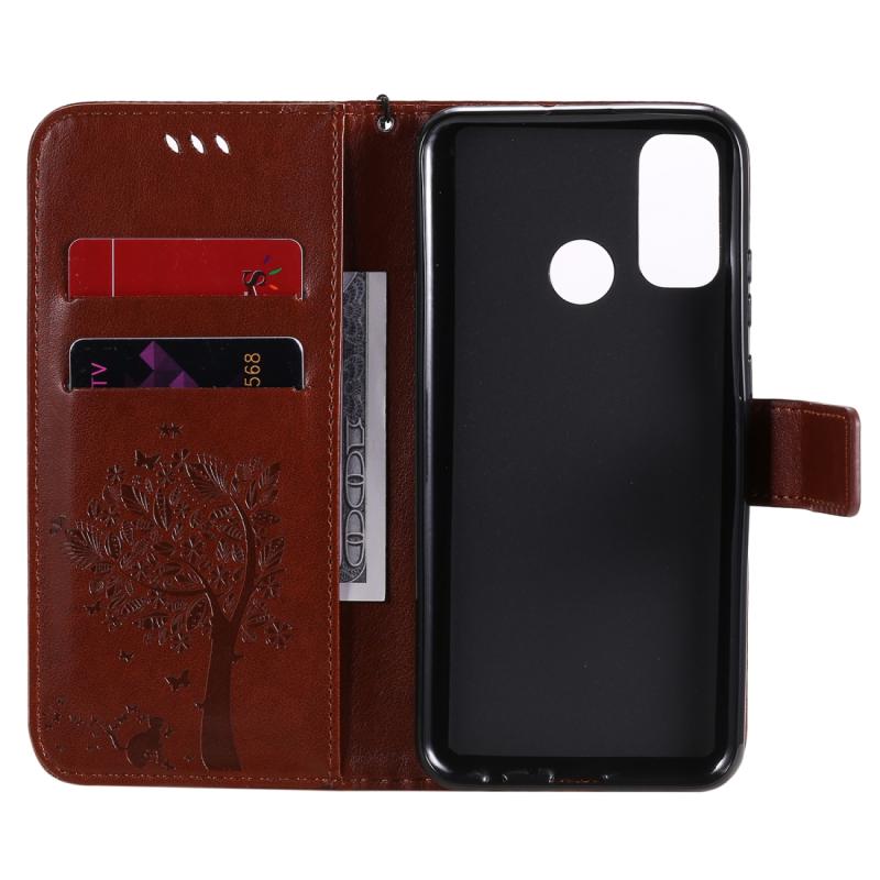 Θήκη Huawei P Smart 2020, Δερμάτινη, Οριζόντια, με ανάγλυφο σχέδιο Δέντρου & Γάτας, με βάση στήριξης, θήκες για κάρτες, πορτοφόλι & λουρί (Καφέ)