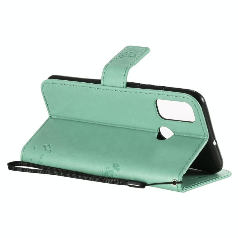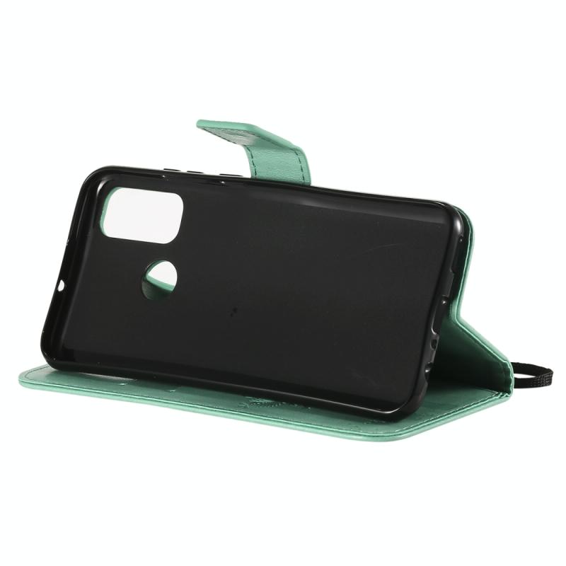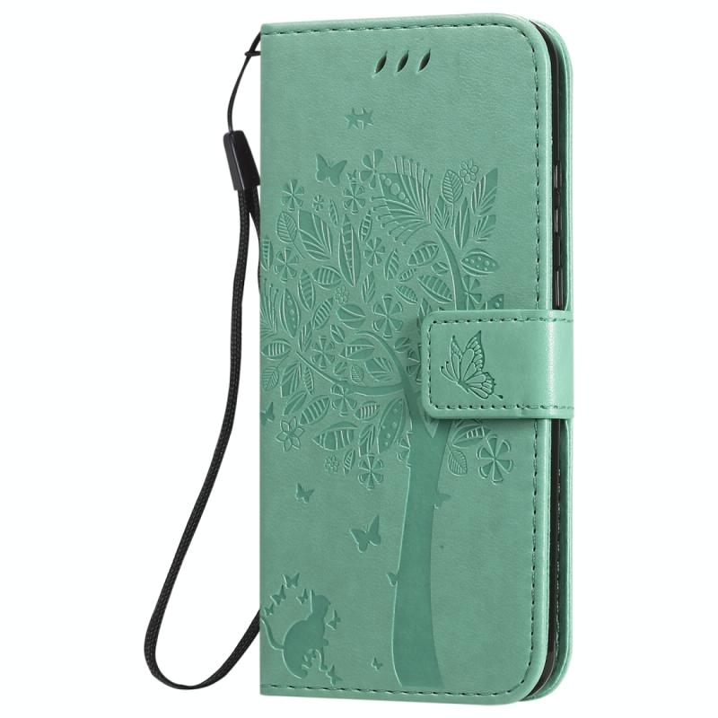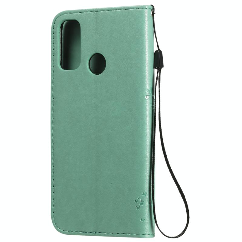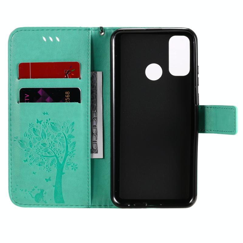 Θήκη Huawei P Smart 2020, Δερμάτινη οριζόντια με ανάγλυφο σχέδιο Δέντρου & Γάτας, με βάση στήριξης, θήκες καρτών, πορτοφόλι & λουρί (πράσινο)