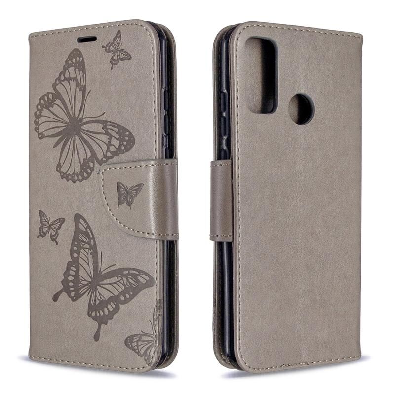 Για Huawei P Smart (2020) Δύο πεταλούδες ανάγλυφο μοτίβο οριζόντια Flip δερμάτινη θήκη με κάτοχο & υποδοχή για κάρτες & πορτοφόλι & κορδόνι (Γκρι)