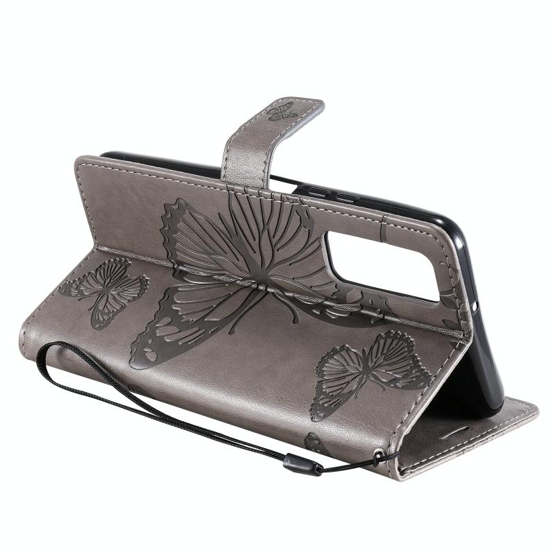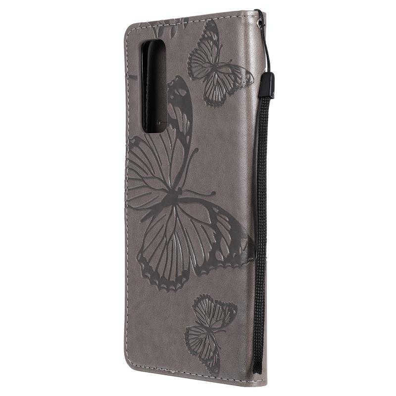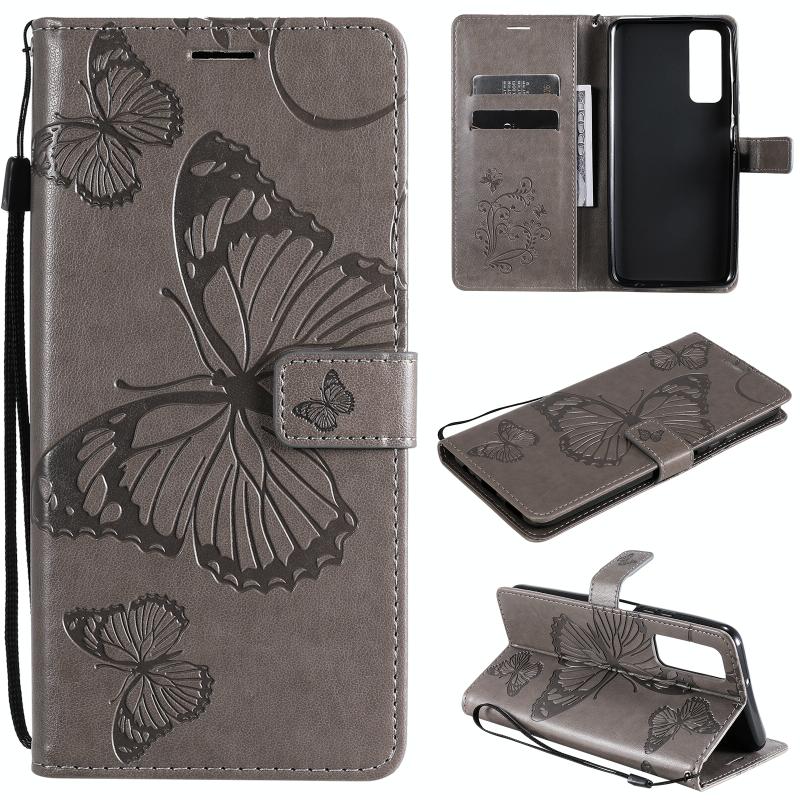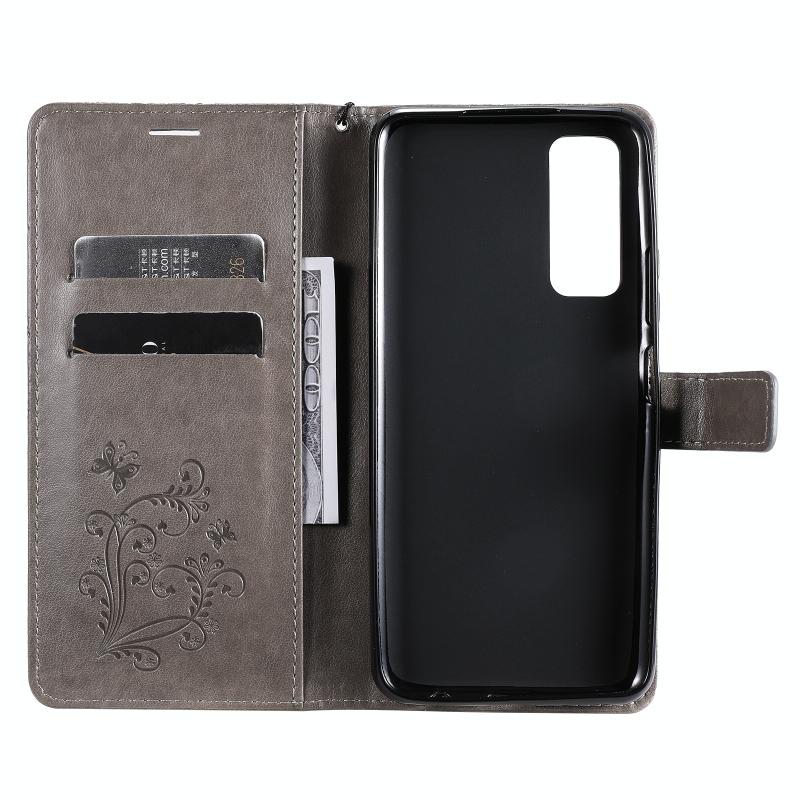Θήκη δέρματος οριζόντιας αναδίπλωσης με ανάγλυφο σχέδιο 3D πεταλούδων για Huawei P smart 2021 με βάση στήριξης & υποδοχή κάρτας & πορτοφόλι (Χρυσό ροζ)