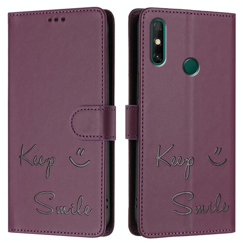 Για Huawei P smart 2021 4G Χαμόγελο ανάγλυφο RFID δερμάτινη θήκη τηλεφώνου (Violet)