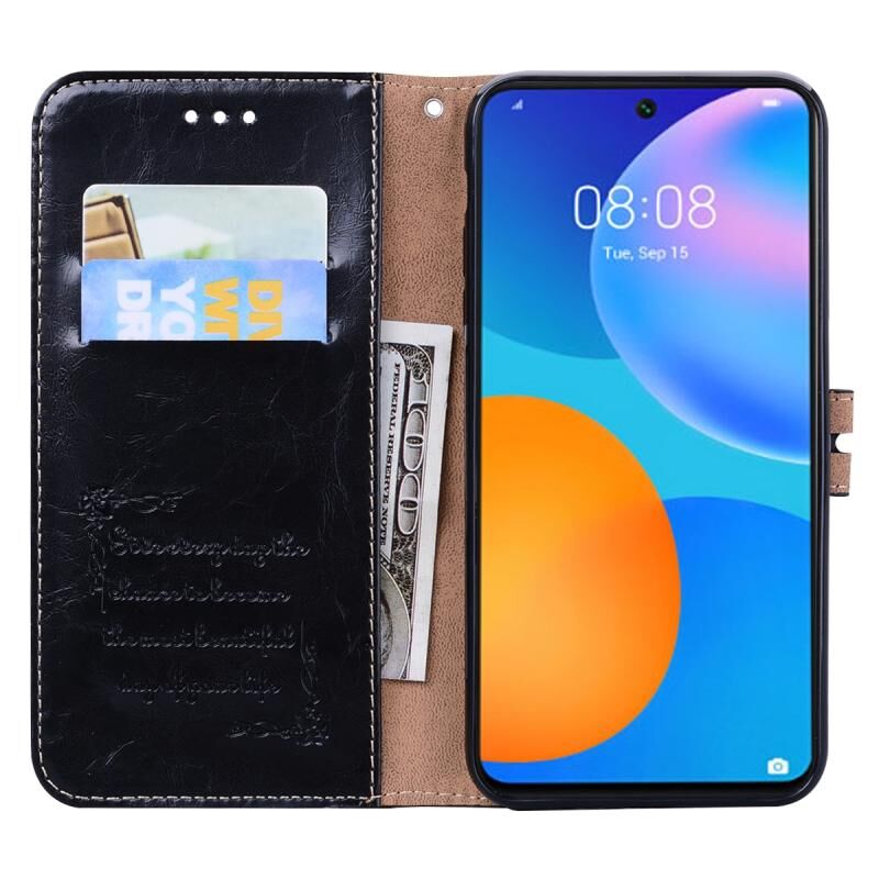 Για Huawei P smart 2021 Business Style Oil Wax υφή οριζόντια Flip δερμάτινη θήκη με κάτοχο & υποδοχές καρτών & πορτοφόλι (μαύρο) (AutSpace)