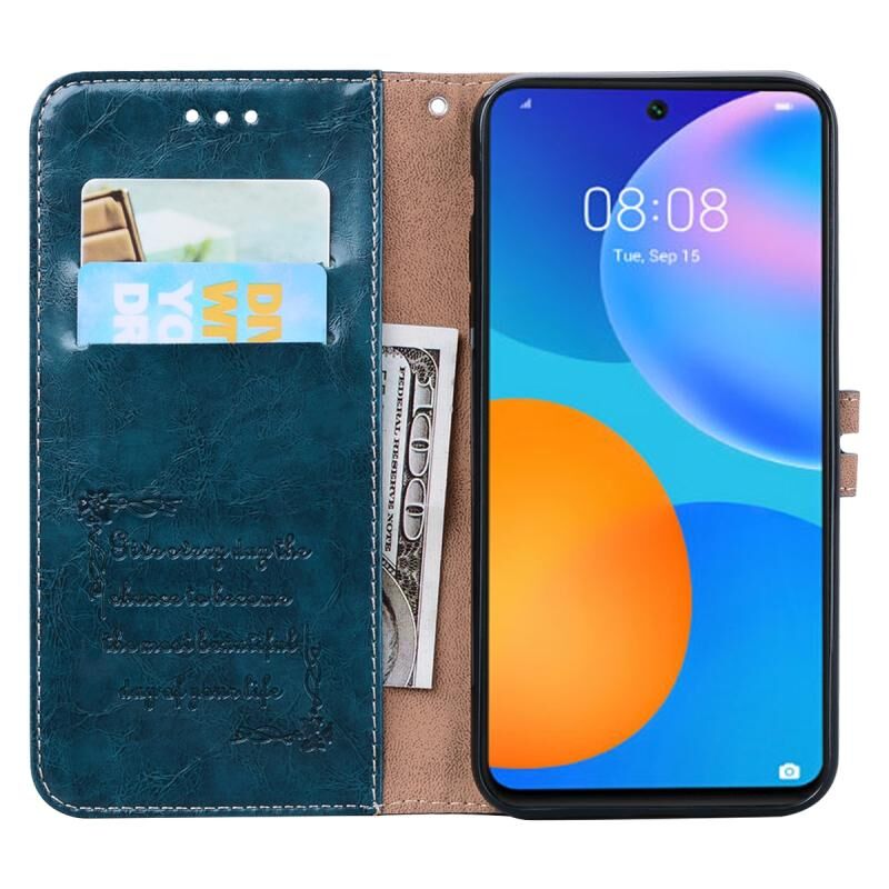Για Huawei P smart 2021 Business Style Oil Wax υφή οριζόντια Flip δερμάτινη θήκη με κάτοχο & υποδοχές καρτών & πορτοφόλι (μπλε) (AutSpace)