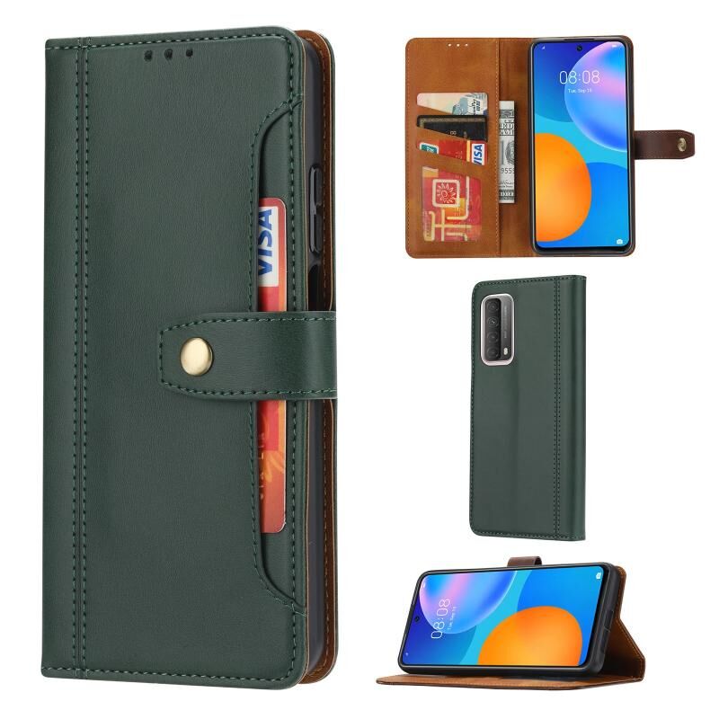 Για Huawei P smart 2021 Calf Texture Double Fold Κούμπωμα οριζόντια Flip δερμάτινη θήκη με κορνίζα & κάτοχος φωτογραφιών & υποδοχές για κάρτες & πορτοφόλι (πράσινο) (idewei)