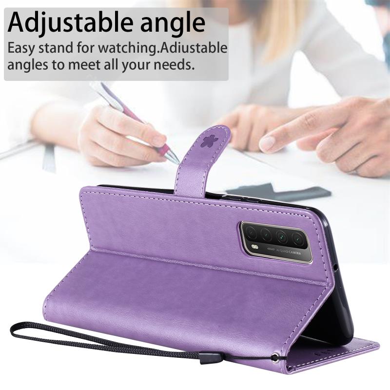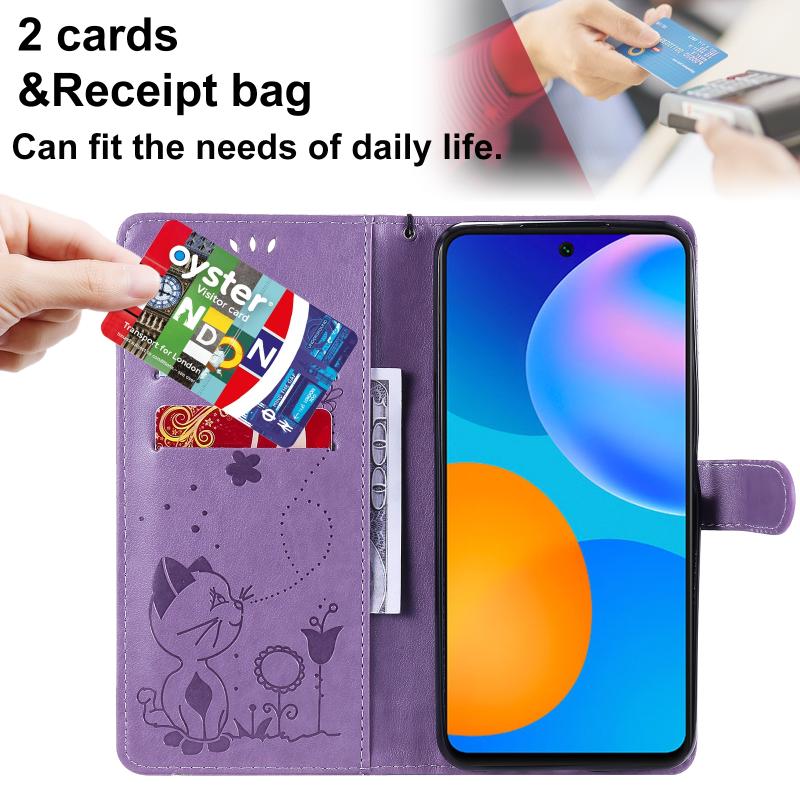 Θήκη Huawei P Smart 2021 Cat Bee με ανάγλυφο σχέδιο, αντικραδασμική, οριζόντια, δερμάτινη με βάση στήριξης & θήκες καρτών & πορτοφόλι (Χρυσό Ρόδι)
