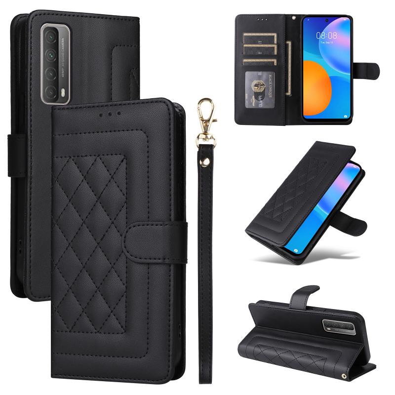 For Huawei P Smart 2021 Diamond Lattice Leather Flip Phone Case(Black)