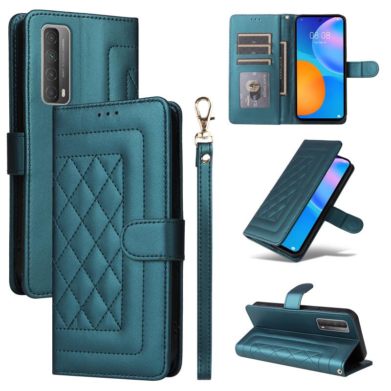 For Huawei P Smart 2021 Diamond Lattice Leather Flip Phone Case(Green)