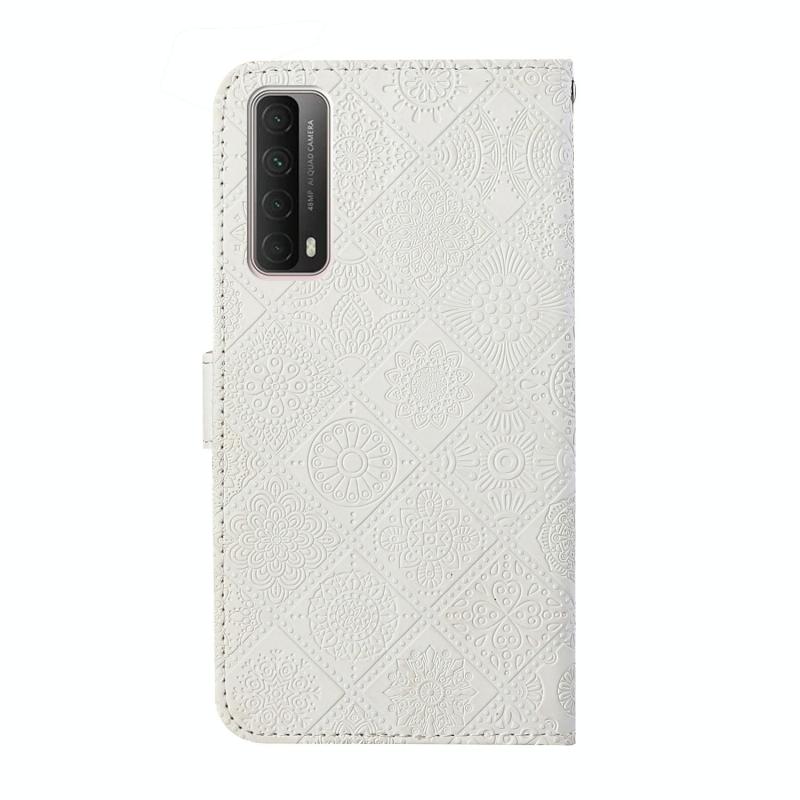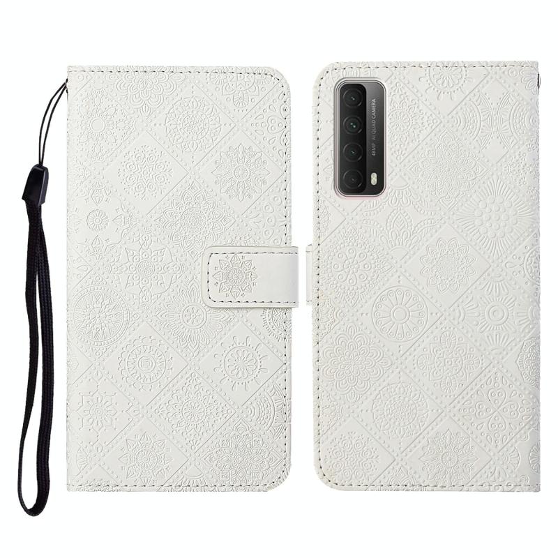 Θήκη Huawei P smart 2021 Εθνικού Στυλ με ανάγλυφο σχέδιο, οριζόντια, από δέρμα με βάση στήριξης & θήκες καρτών & πορτοφόλι & κορδόνι (Λευκό)