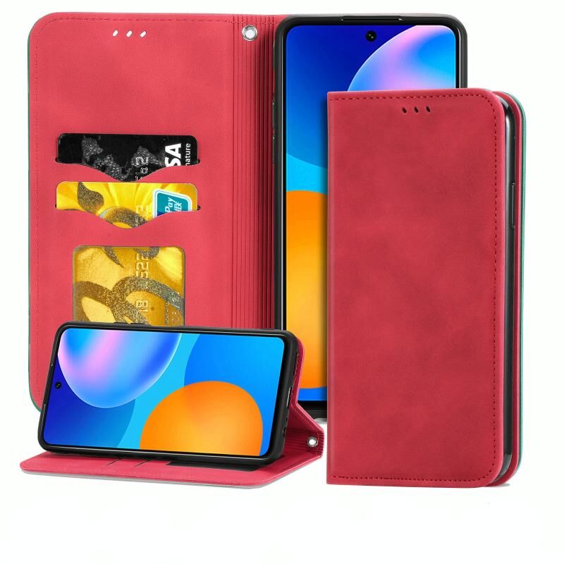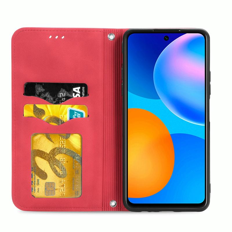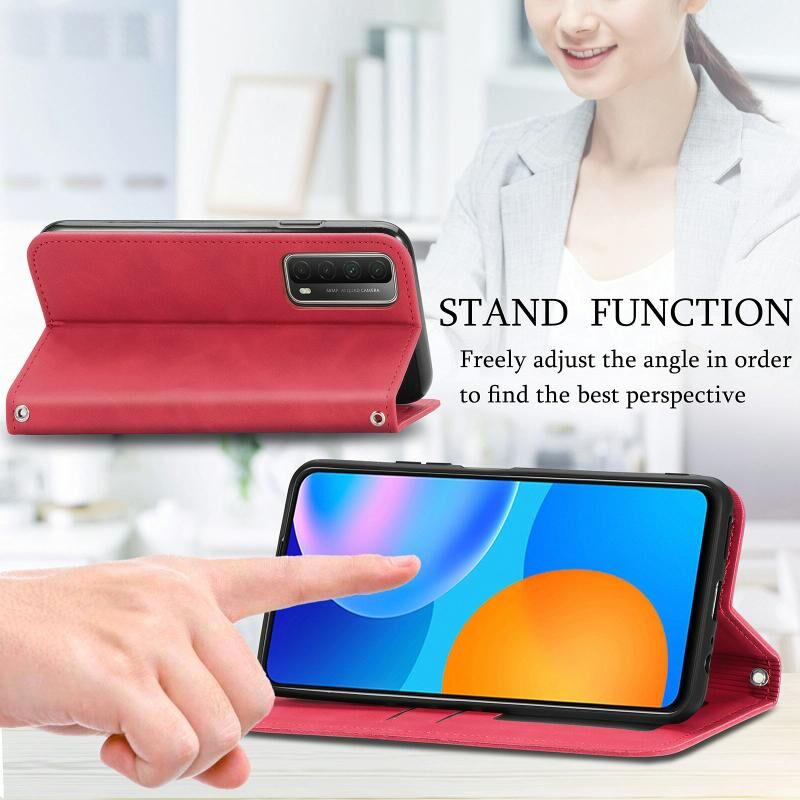 For Huawei P smart 2021 Retro Skin Feel Business Magnetic Horizontal Flip Leather Case(Red)