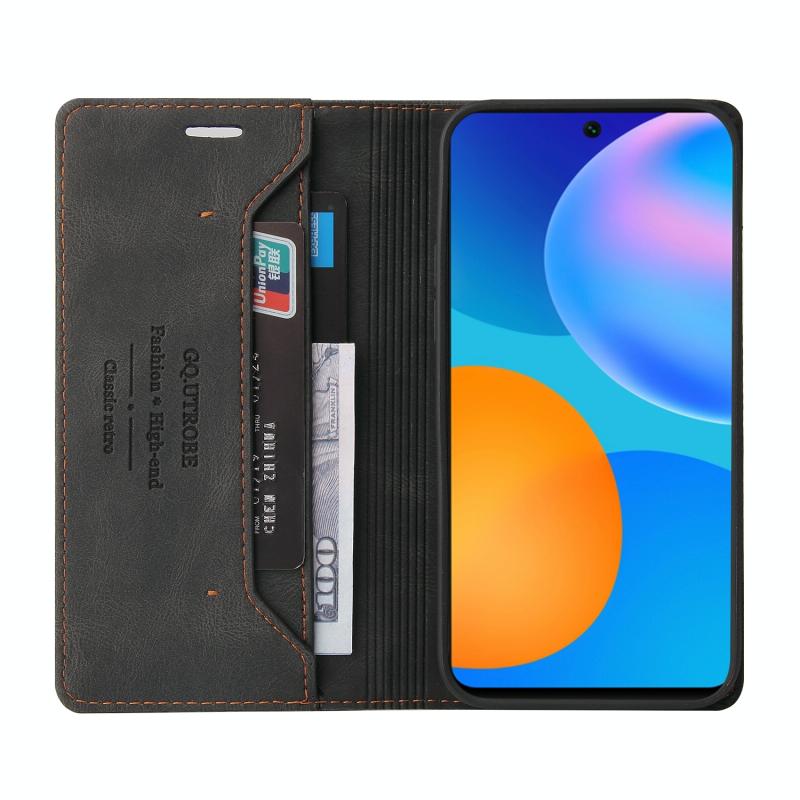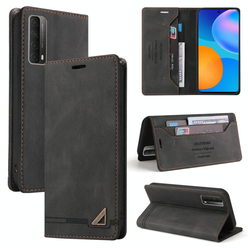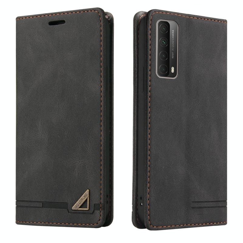 For Huawei P Smart 2021 Skin Feel Anti-theft Brush Horizontal Flip Leather Case with Holder & Card Slots & Wallet(Black)
